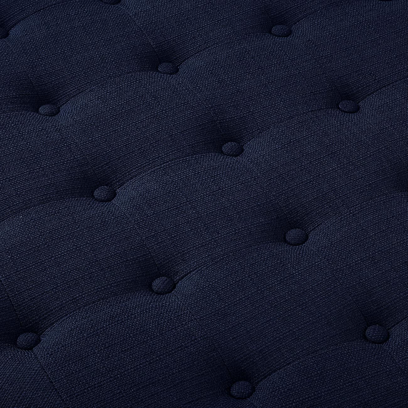 24KF Large Round Upholstered Tufted Linen Ottoman Coffee Table, Large Footrest Ottoman with Wood Shelf Storage- Navy Blue