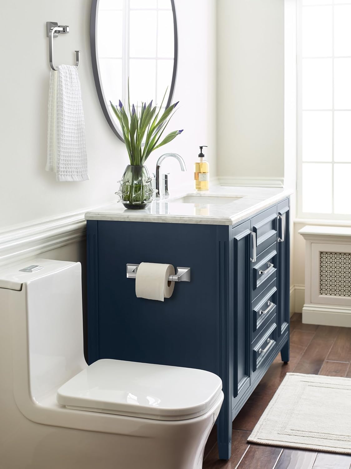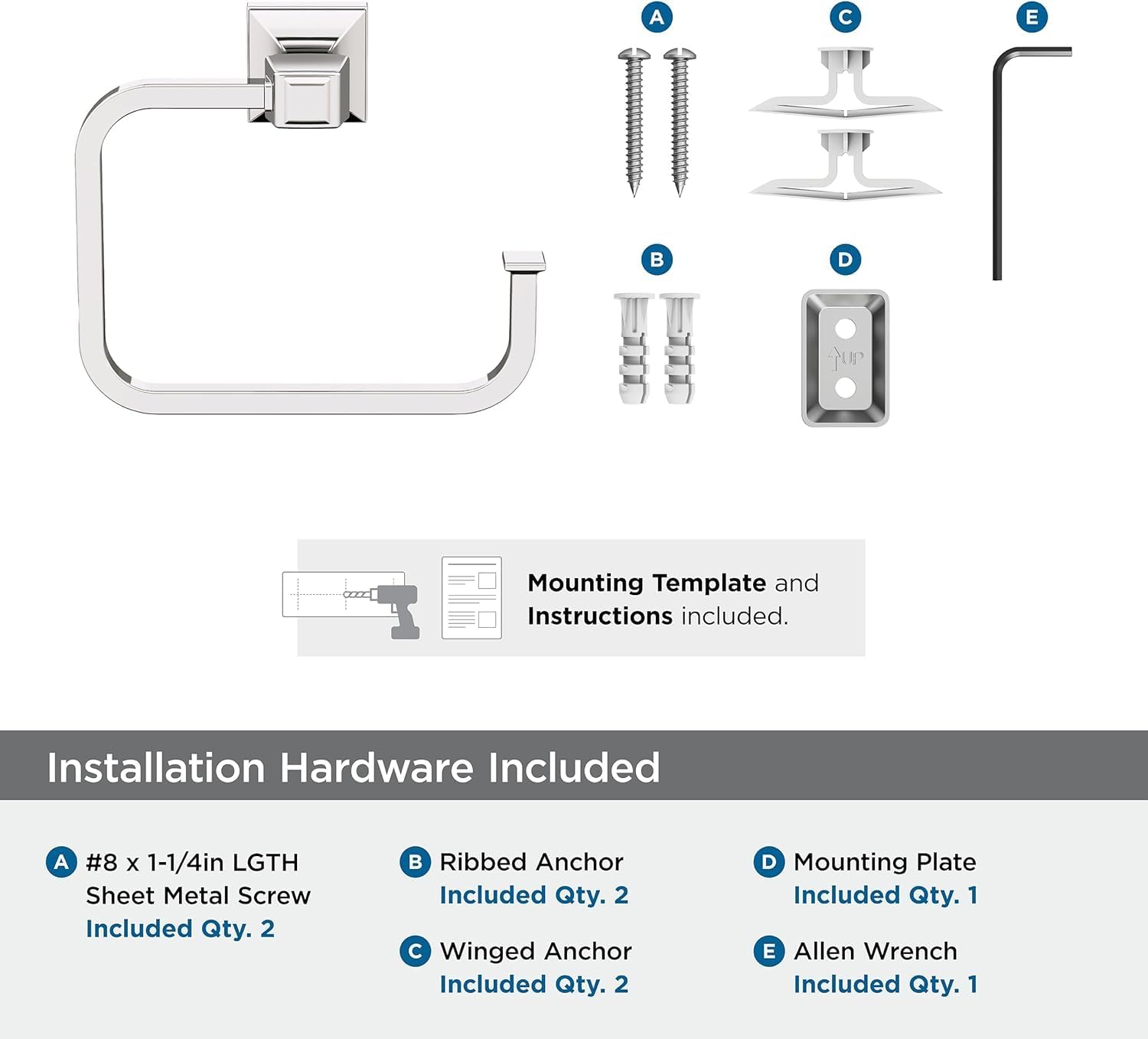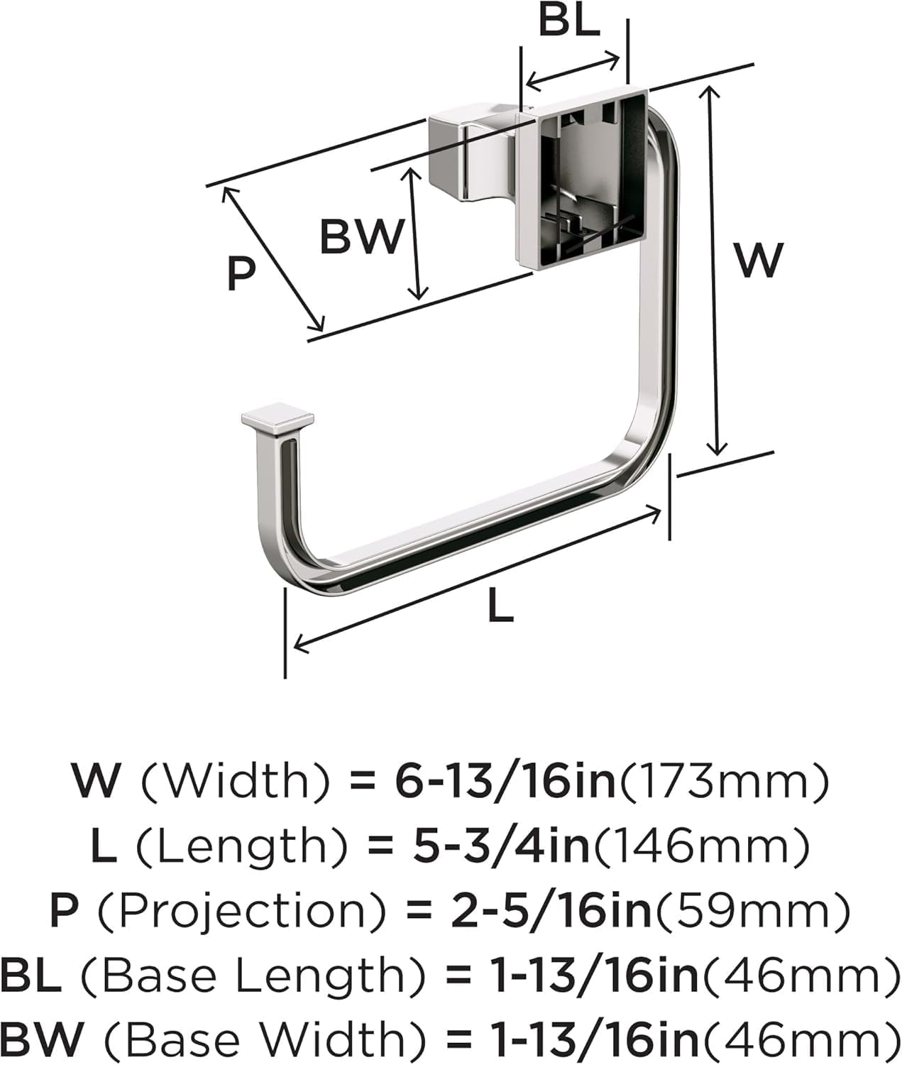 The Amerock BH36022PN 5-3/4 inch (146mm) Width Towel Ring is finished in Polished Nickel. Enduring and approachable, the Mulholland collection is an inviting blend of elegant lines and understated details. A warmer counterpart to chrome finishes, polished nickel features soft golden undertones that enhance any space with a rich luster reminiscent of sterling silver. Founded in 1928, Amerock’s award-winning home solutions including decorative and functional cabinet hardware, bath accessories, decorative hooks and wall plates have built the company’s reputation for chic design accessories that inspire homeowners to express their personal style. Amerock offers a variety of styles and finishes at affordable prices that add the perfect finishing touch to any room.