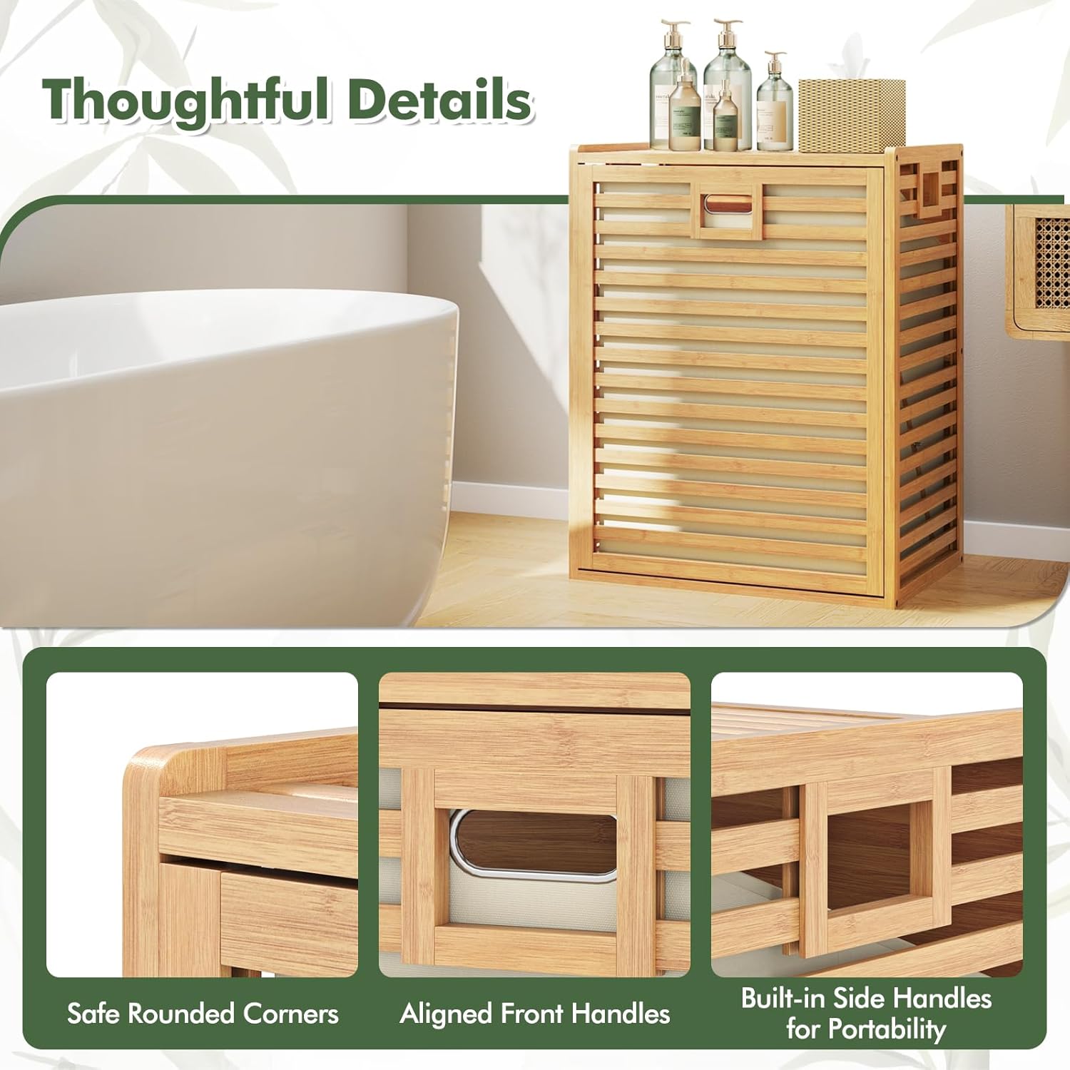 Giantex Tilt Out Laundry Hamper, Bamboo Laundry Storage Cabinet with Removable & Foldable Fabric Bin, Top Shelf, Laundry Basket Organizer for Bathroom, Laundry Room, Living Room, Bedroom, Natural