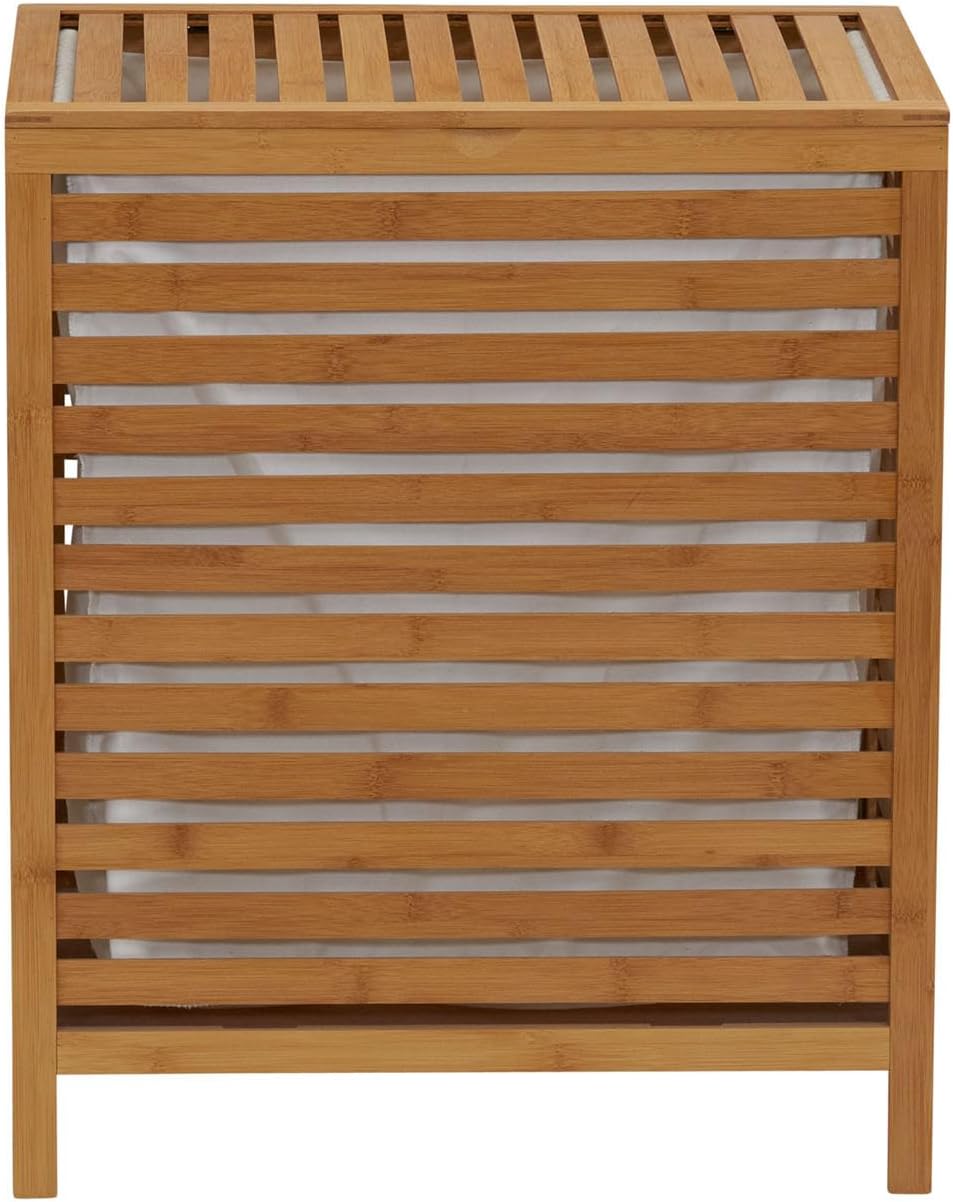 Household Essentials Bamboo Laundry Hamper, Slated Hamper with Natural Cotton Bag, Removable Bag and Foldable Frame, Chic and Environmentally Friendly