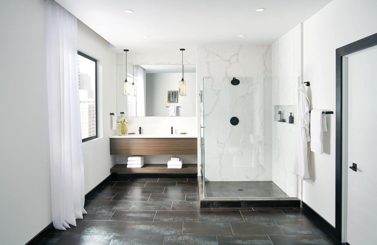 Bring a refreshed, modern look to your bathroom with the simple lines and contemporary style of the Moen Align Double Robe Hook. Both arm-style hooks move left or right and can be positioned where you need them.