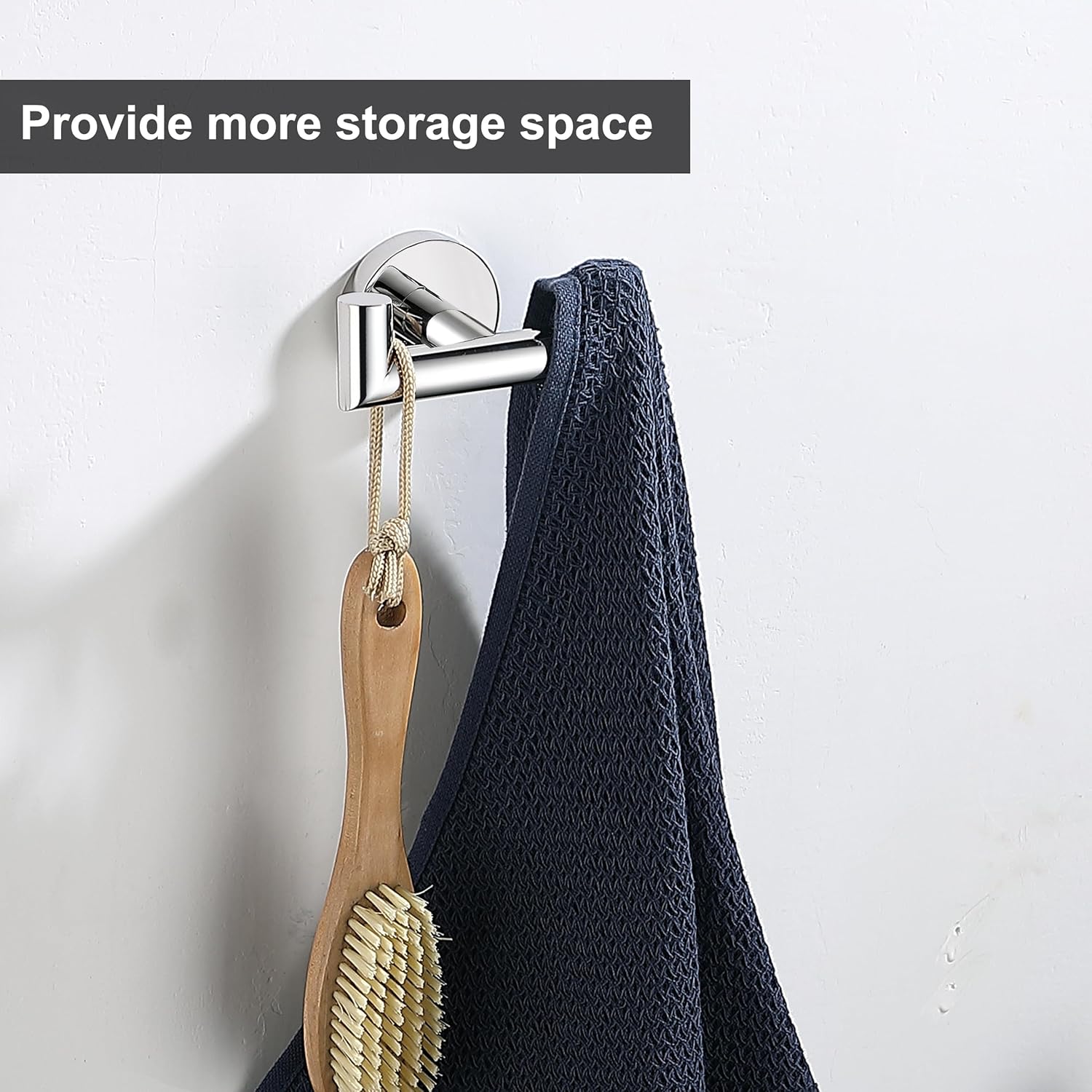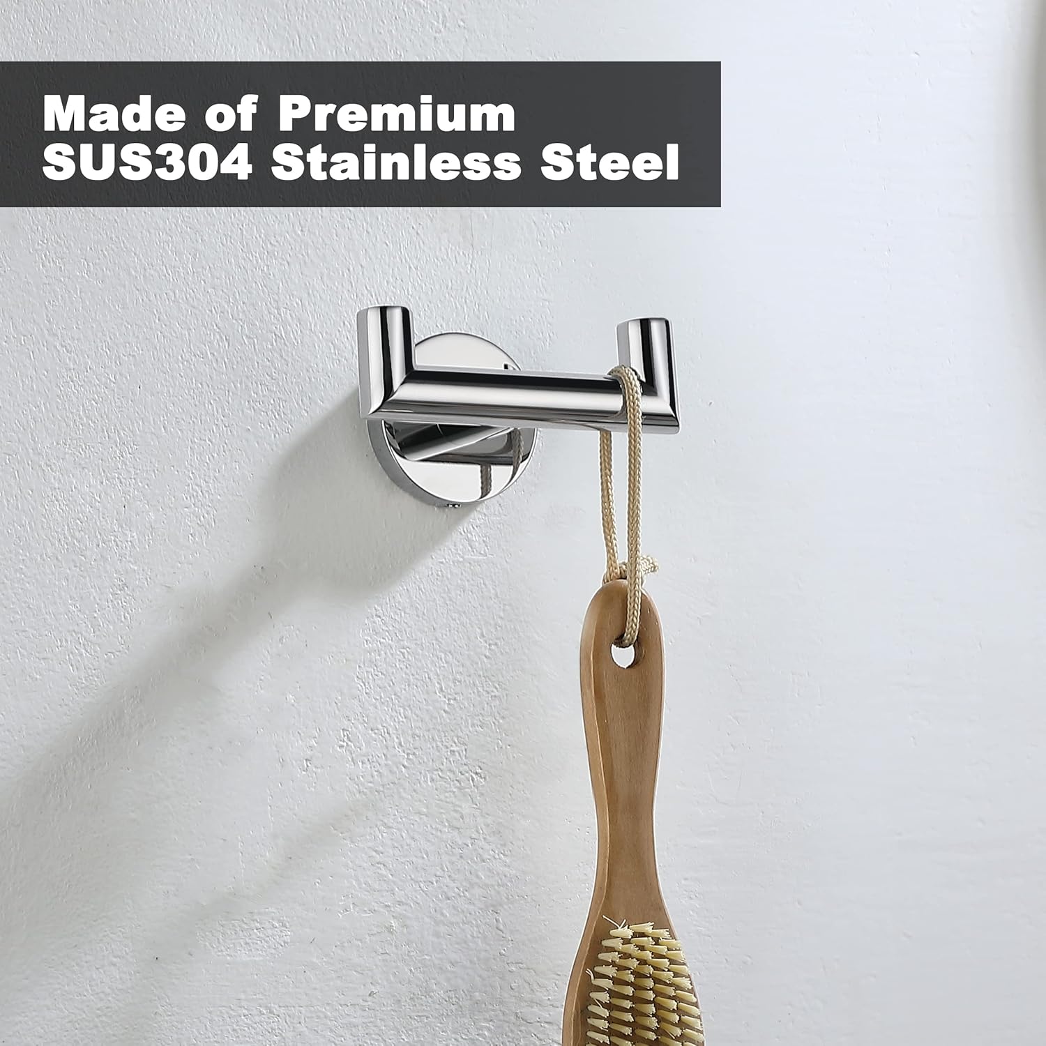 Towel Hooks For Bathrooms, Polished Chrome Towel Hook For Kitchen Bathroom, SUS304 Stainless Steel Coat Hook, Heavy Duty Double Holder Robe Hooks For Hanging Towels,Coats,Clothes,Wall Mount, 4 Pack